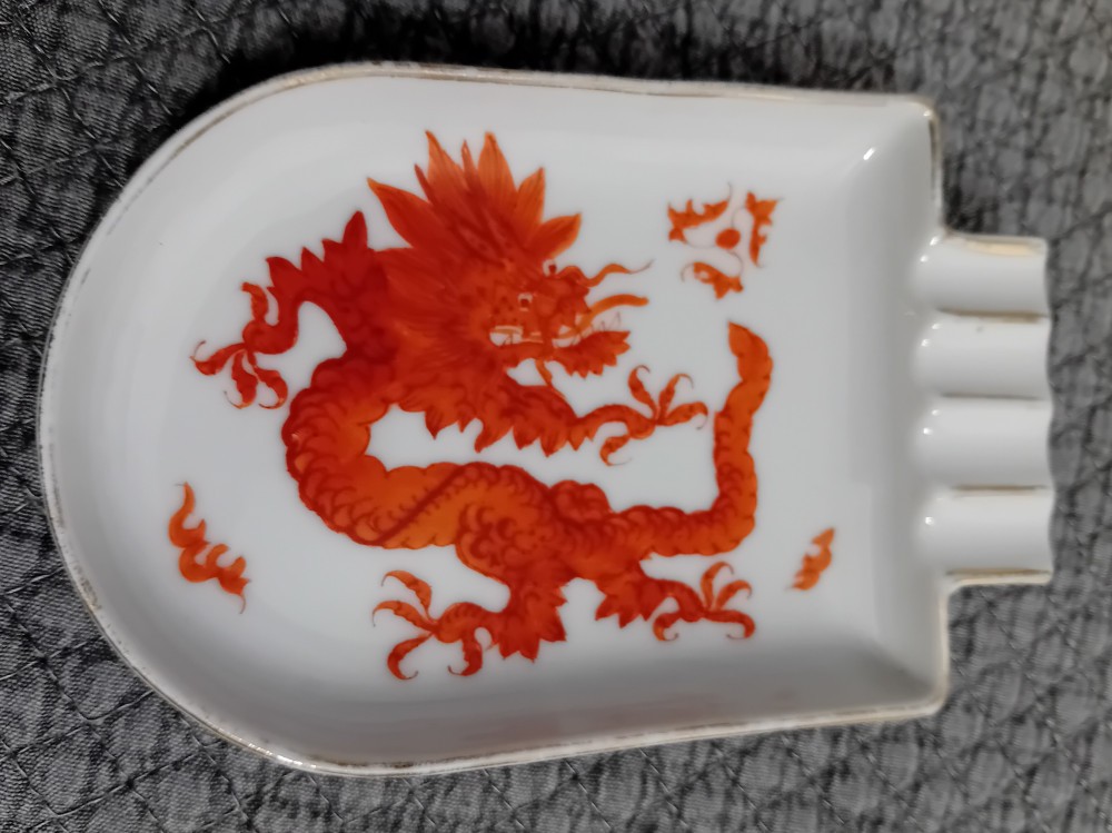 Scrumiera portelan Kaestner-Saxonia dresden, pictat manual din gama red dragon, folosit in stare buna