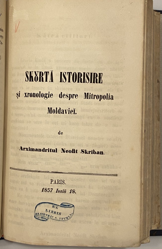 veche Arhimandrit Neofit Scriban Paris 1857 27 pagini cartea se