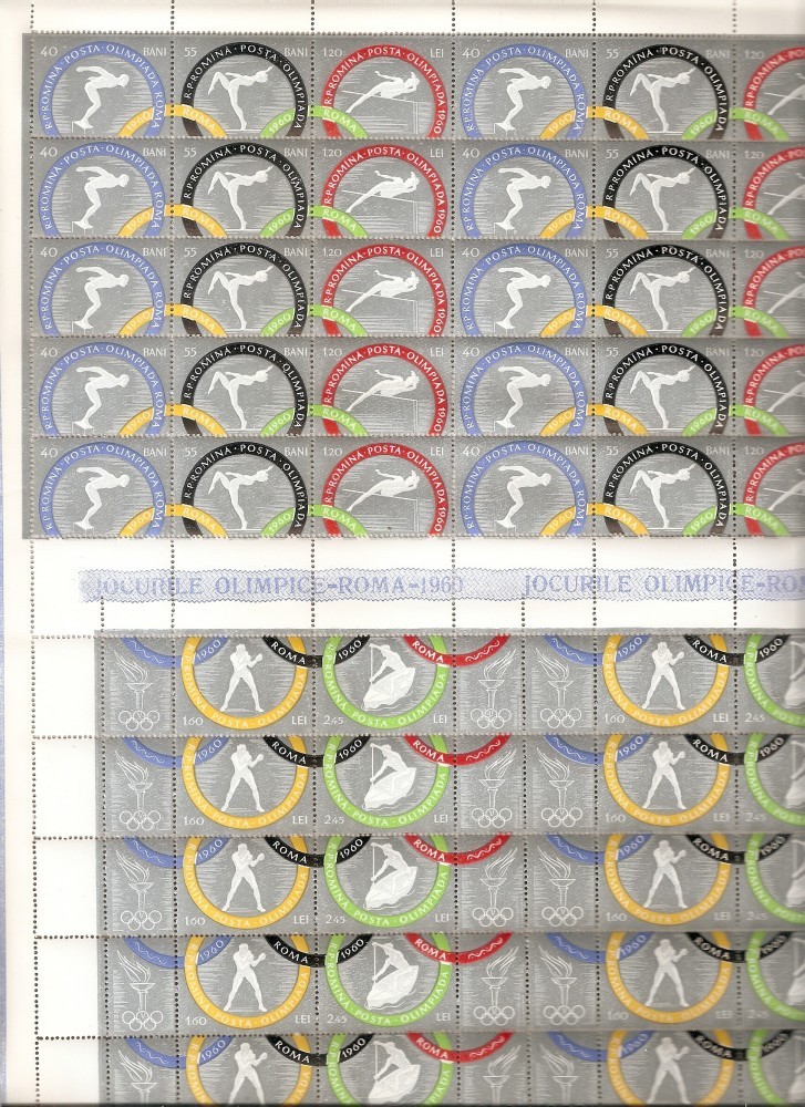 SD Romania 1960 LP494+494a-J.O. Roma (I),dantelat, coli 15 serii, cu erori