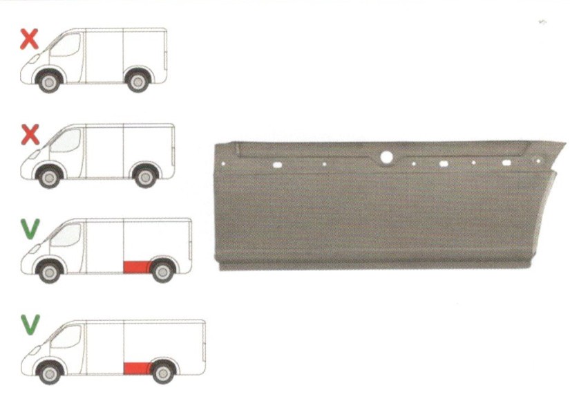 Segment reparatie aripa spate Mercedes Sprinter 2006-, VW Crafter 2005- L=4300, 4700 Partea Stanga, Spate, in fata rotii ,lungime 1075mm inaltime 385