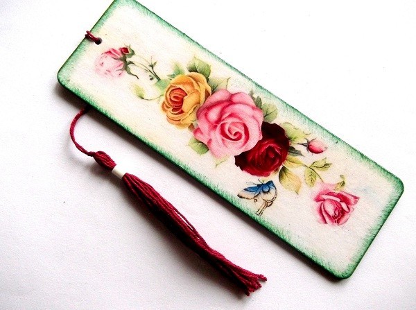 semn de carte decorat pe lemn si lacuit cu lac ecologic