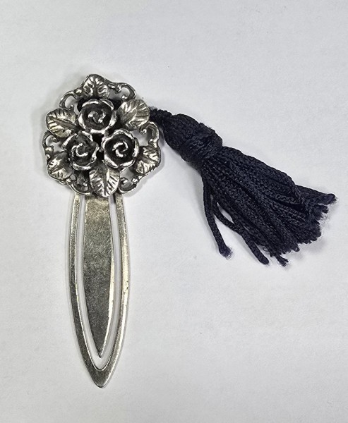 Semn de carte din argint, decorat cu flori de trandafir, Secol XIX