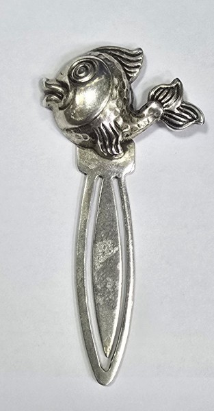 Semn de carte din argint, decorat cu peste, Secol XIX