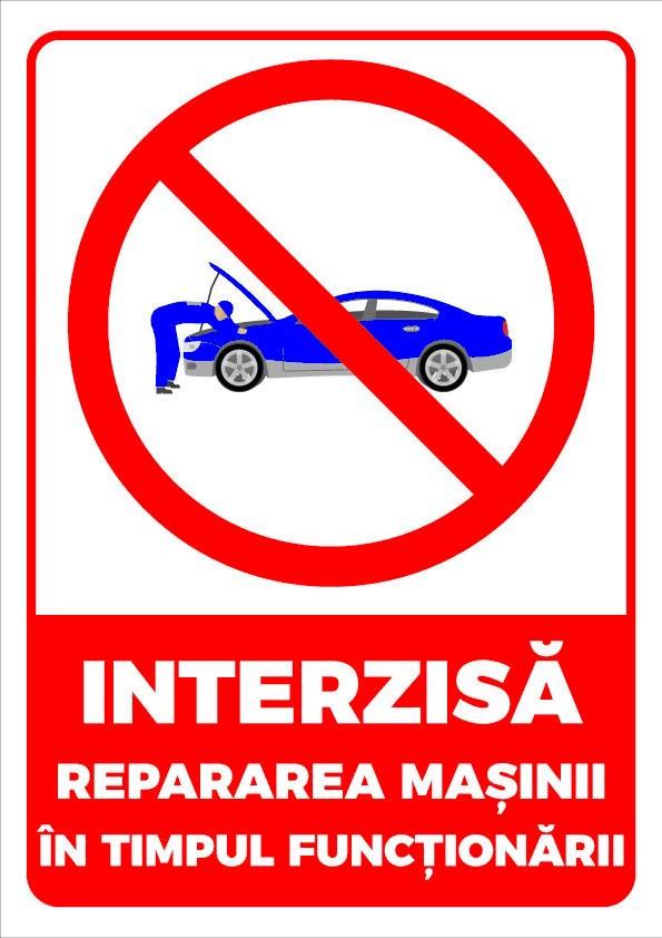 Semn interzisa repararea masinii in timpul functionariiVă putem oferi alte dimensiuni, materiale sau modele separat la cerere.