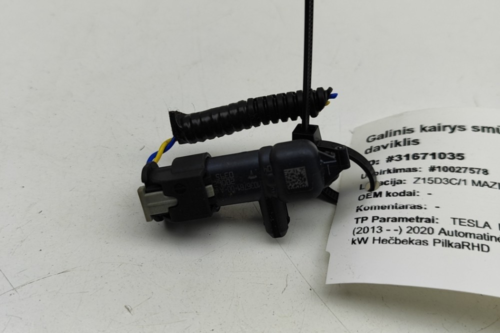 Senzor de impact stânga spate TESLA MODEL X . OEM: 1036761-00-A . Aceasta este o piesă originală de la producător, asigurând calitatea și compatibilitatea cu vehiculul dumneavoastră. . Expediem în siguranță din depozitele noastre din Europa Centrală și de Nord, folosind soluții logistice de încredere. Suntem cel mai mare depozit de piese auto din dezmembrări din Europa de Nord, oferind o gamă largă de piese second-hand precum motoare, baterii pentru vehicule electrice, cutii de viteze etc. Gama noastră include piese pentru BMW, Mercedes-Benz, Audi, VW, Seat, Toyota, Lexus, Tesla, Nissan, Peugeot, Citroen, Renault, Land Rover, Jaguar și alte mărci auto. Oferim garanție pentru piese originale și politică de retur. Când ne sunați, vă explicăm condițiile de garanție pentru fiecare caz în parte și organizăm livrarea folosind logistică modernă. Piesele uzate sunt acoperite de garanție.