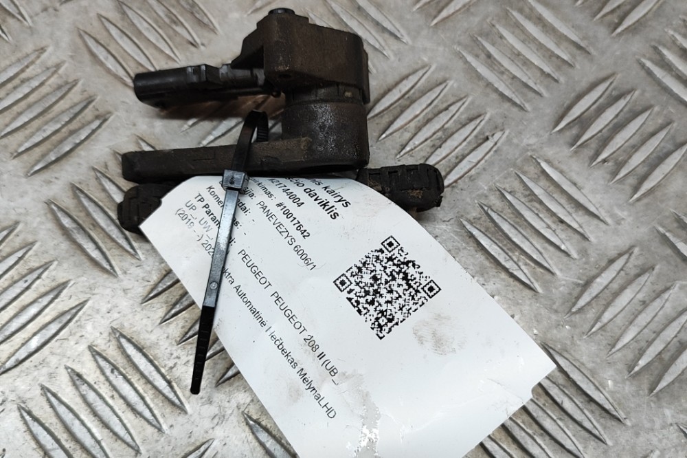 Senzor de nivel înălțime stânga față PEUGEOT 208 II UB_, UP_, UW_, UJ_ . OEM: 9824543080 . Aceasta este o piesă originală de la producător, asigurând calitatea și compatibilitatea cu vehiculul dumneavoastră. . Expediem în siguranță din depozitele noastre din Europa Centrală și de Nord, folosind soluții logistice de încredere. Suntem cel mai mare depozit de piese auto din dezmembrări din Europa de Nord, oferind o gamă largă de piese second-hand precum motoare, baterii pentru vehicule electrice, cutii de viteze etc. Gama noastră include piese pentru BMW, Mercedes-Benz, Audi, VW, Seat, Toyota, Lexus, Tesla, Nissan, Peugeot, Citroen, Renault, Land Rover, Jaguar și alte mărci auto. Oferim garanție pentru piese originale și politică de retur. Când ne sunați, vă explicăm condițiile de garanție pentru fiecare caz în parte și organizăm livrarea folosind logistică modernă. Piesele uzate sunt acoperite de garanție.