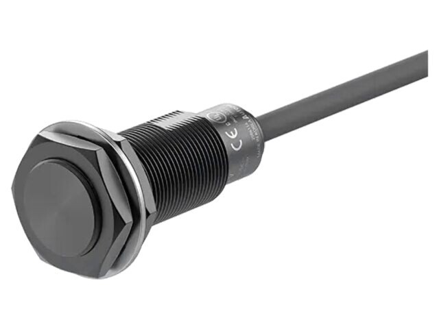 Senzor Inductiv AUTONICS PRFDA18-7DP-V 7mm PNP NO M18 10-30V IP66 100mA este un dispozitiv robust și precis, ideal pentru detecția obiectelor metalice în diverse aplicații industriale. Fabricat de AUTONICS, face parte din seria PRFD și oferă o rază de detecție de 7 mm, cu o frecvență maximă de comutare de 80 Hz. Funcționează la o tensiune de alimentare între 10 și 30V DC și suportă un curent maxim de lucru de 0,1A. Carcasa de tip M18, realizată din PTFE, asigură o rezistență ridicată la împroșcare și o clasă de etanșeitate IP66, garantând protecție împotriva prafului și a jeturilor de apă. Configurația ieșirii este PNP cu contact normal deschis (NO), iar conexiunea se face prin cabluri cu 4 pini. Temperatura de lucru variază între -25 și 70°C, iar lungimea totală a senzorului este de 50 mm. Partea frontală este incorporată, oferind un design compact și durabil. Acest senzor inductiv este soluția ideală pentru automatizări industriale ce necesită precizie și fiabilitate în condiții variate de mediu.