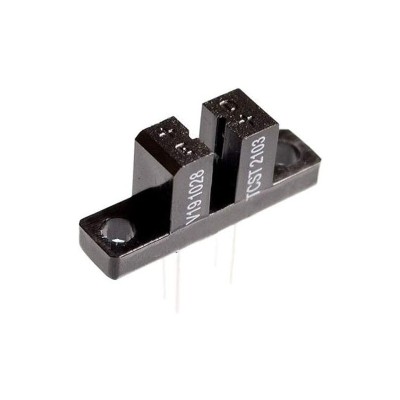 Senzor optic TCST2103 este alcătuit dintr-un LED IR și un fototransistor plasate față în față, cu o fantă de trecere între ele. Obiectele care trec prin fantă întrerup fasciculul IR, generând semnale logice detectabile.