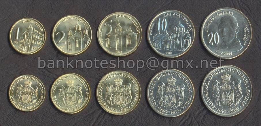 Splendid set complet de monede din Serbia in stare necirculata (UNC) cu urmatoarele denominari: