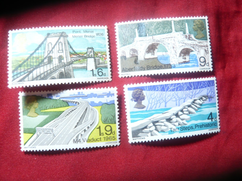 Serie Marea Britanie 1968 Poduri , 4 valori ,guma patata
