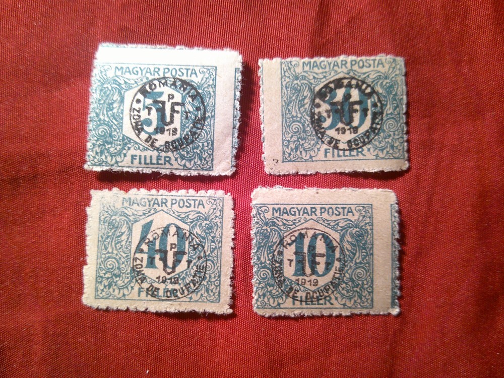 Serie mica Porto supratipar Regatul Romaniei pe timbre Ungaria 1919 , 4 valori