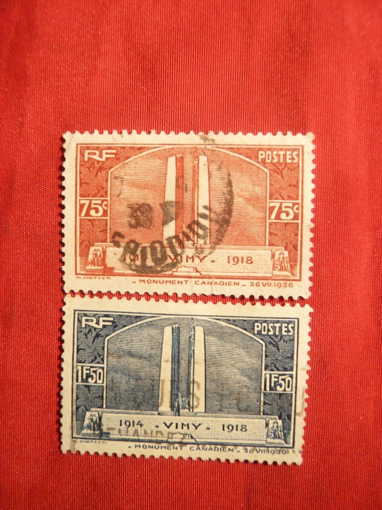 Serie- Monument Vimy-pt. canadieni -1936 Franta 2 val.stamp.