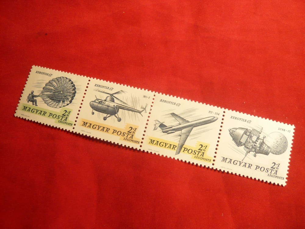 Serie- Straif 4 val. -Aviatie-Expoz.Aerofilatelie Budapesta 1967 ,Ungaria