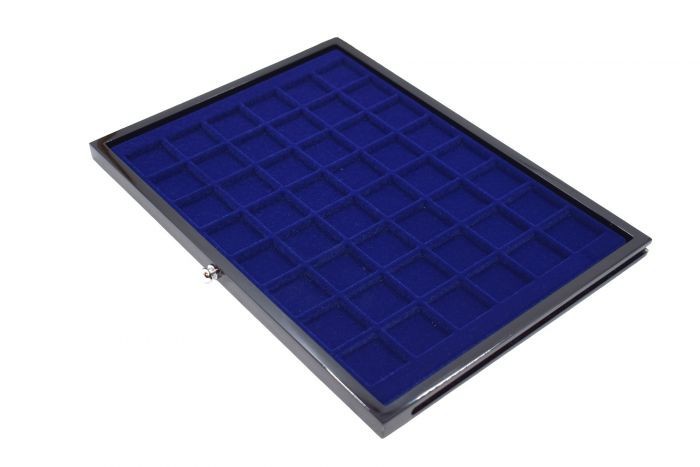 Sertar cu insertie de catifea albastra pentru monede de 33 mm. Lemn acoperit in lac de pian. Sertarul are o inaltime 12 mm. Pentru cutia de lemn, Black Lacquer, 6590 6591.