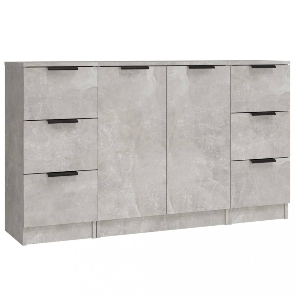 Servante, 3 piese, gri beton, lemn prelucrat