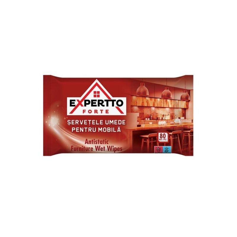 Servetele umede pentru mobila si suprafete din lemn, Expertto Forte, 80 buc