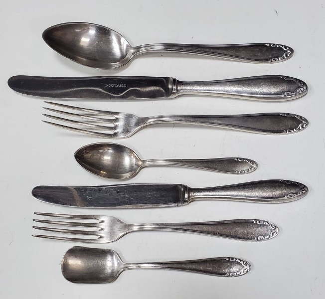Serviciu pentru 12 persoane din metal argintat, marcaj