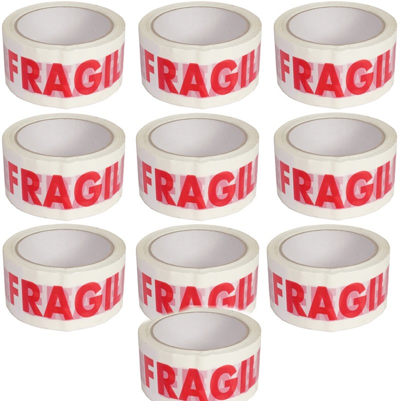 Set 10 Banda adeziva personalizata, inscriptia fragil, 50 mm x 70 m.
