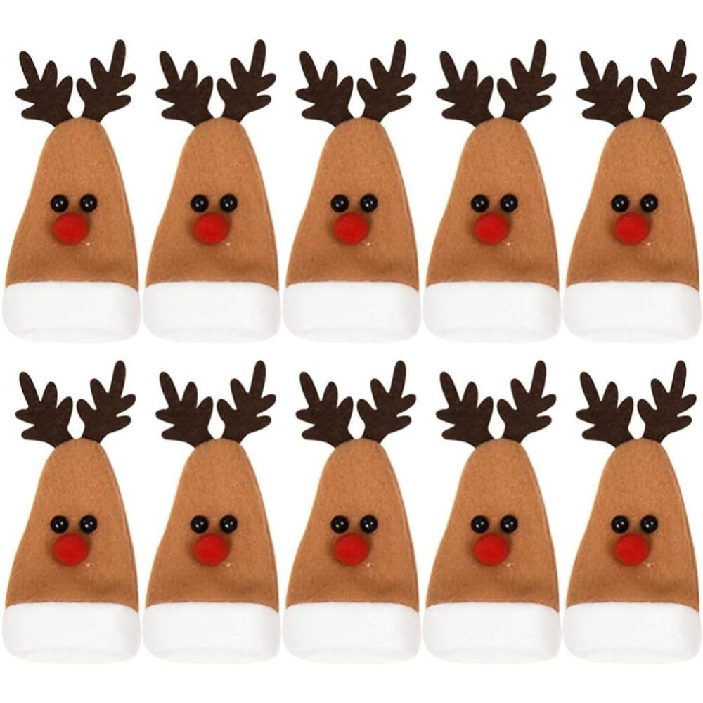 Set 10 Decoratiuni de Craciun, Flippy, pentru Sticle, Tacamuri, Model Ren, 14 x 6 cm, Multicolor