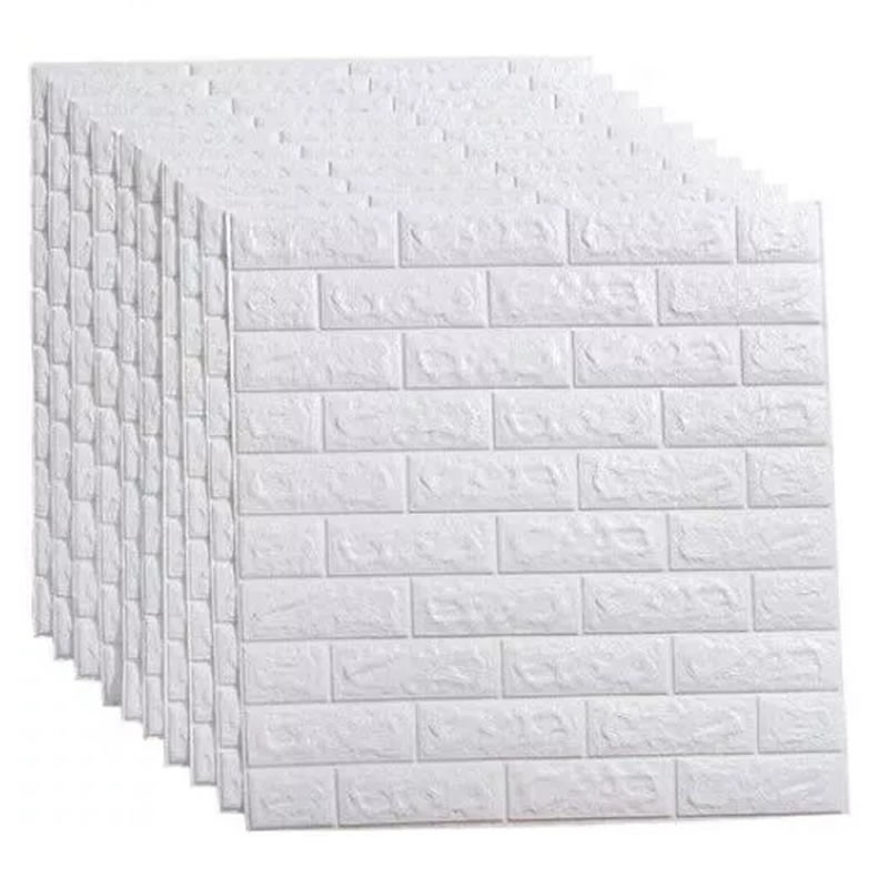 Set 10 tapet 3D autocolant, design caramida alba, rezistent la apa.
