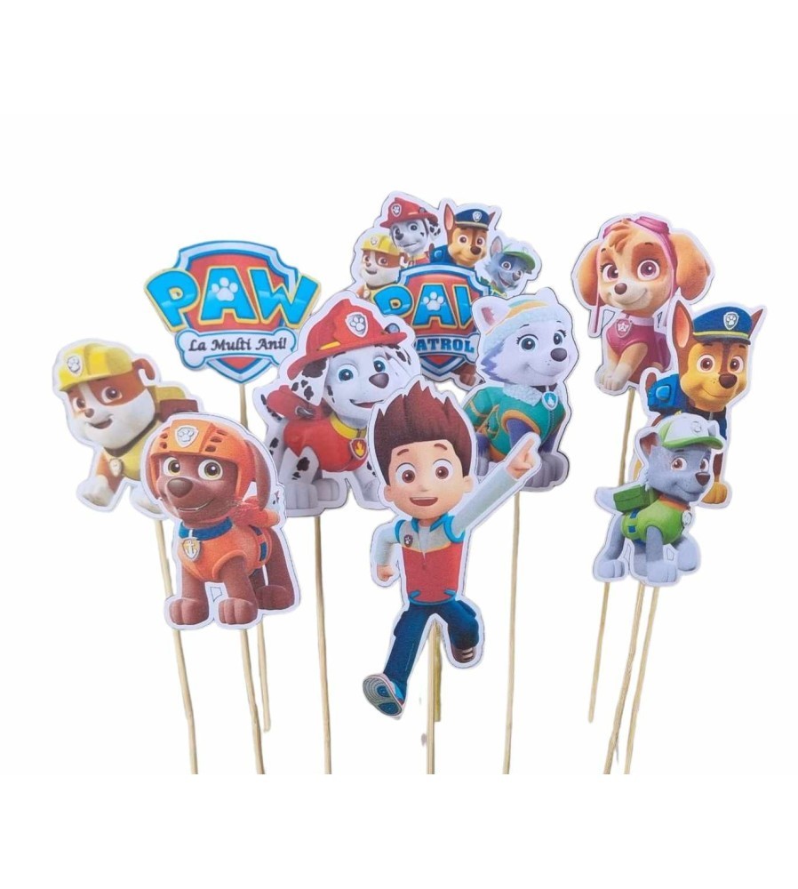Surprinde-i pe cei mici la petrecerea lor preferată cu setul de 10 toppere tematice Patrula