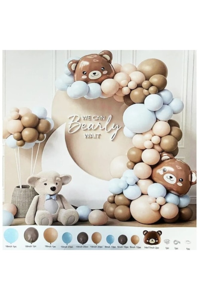 Set 100 baloane - stil arcadă cu ursuleț de pluș maro model 6 albastru.; Acest set elegant și versatil de 100 de baloane este perfect pentru a crea o atmosferă festivă și memorabilă la orice eveniment.; Având o combinație rafinată de baloane albastre și maro, acest kit este ideal pentru a adăuga sofisticare și romantism decorului dumneavoastră.; Beneficii și caracteristici: Baloane de înaltă calitate, fabricate din materiale durabile, ușor de asamblat, cu accesorii incluse pentru crearea unei arcade spectaculoase.; Potrivite pentru petreceri, decorațiuni, zile de naștere, nunți, Ziua Îndrăgostiților și multe altele.; Ideal pentru profesioniști sau decoratori DIY, adaptabil la diferite teme și culori.