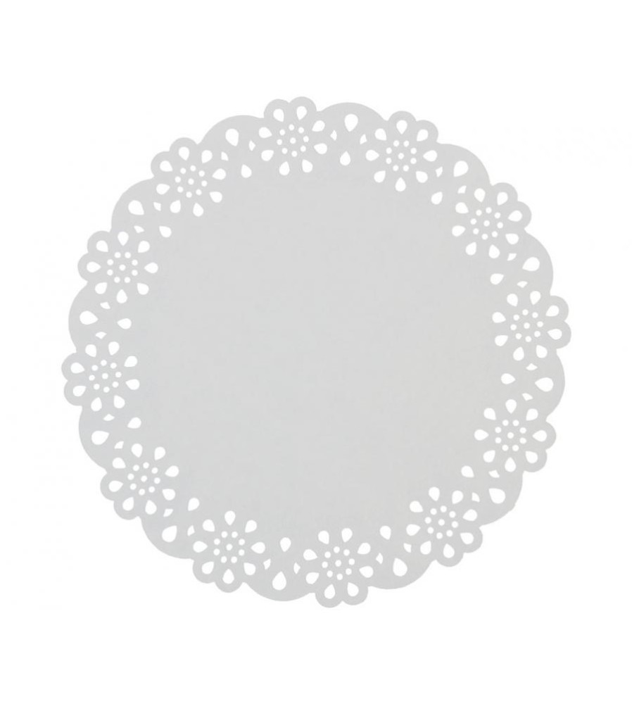 Set 100 de hartie dantelata alba, pentru platouri, rotunde, 27 cm