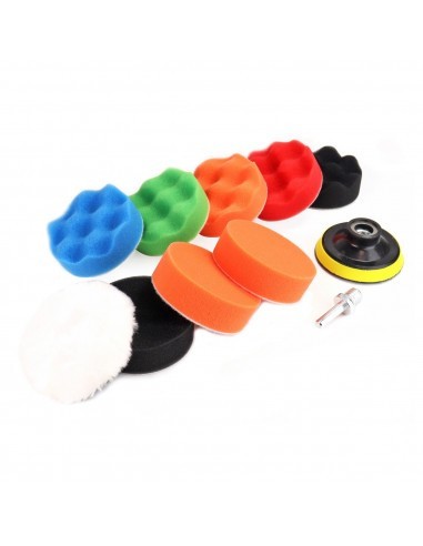 Acest set de 10 piese este alegerea ideala pentru cei care doresc sa obtina un finisaj impecabil al vopselei auto, inclusiv in zonele greu accesibile. Setul include 8 bureti de lustruit cu diferite duritati si texturi, o blana de lustruit, un disc Velcro si un adaptor universal, compatibil cu bormasina, surubelnita electrica sau polishere cu filet M14.