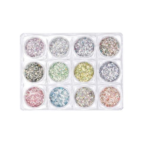 Se livreaza cutiuta cu 12 compartimente de paiete de diferite culori.
