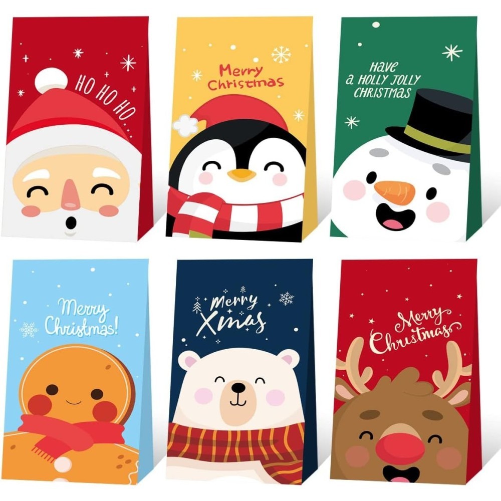 Set 12 Pungi de Cadou, Flippy, Tema Craciun, cu Personaje, 12 Stickere Incluse, 24 x 13 x 8 cm, din Hartie, Multicolor