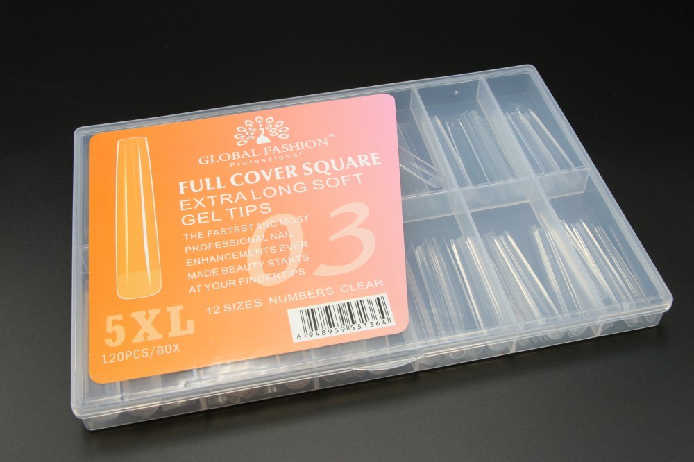 Setul de tipsuri dizolvabile, 120 bucăți, 5XL extra-lung, pătrat, Nr. 03, oferă o soluție rapidă și elegantă pentru unghii perfecte. Cu aplicare ușoară, îndepărtare simplă și formă impecabilă, aceste tipsuri garantează un rezultat profesional, durabil și plin de stil.