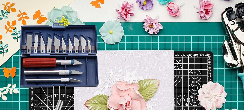 Set 13 cutite de precizie, otel, lame interschimbabile, cutie pentru depozitare inclusa