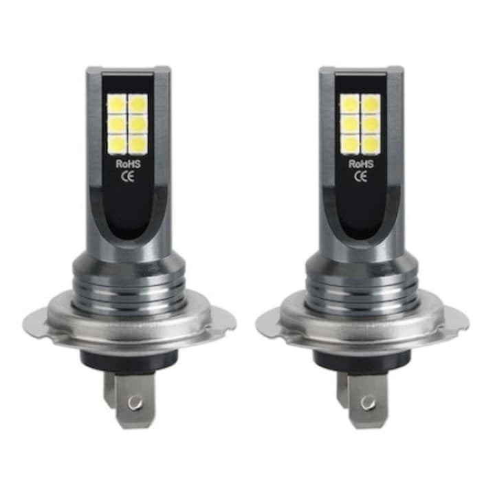 Set 2 becuri auto H7 LED, 12V, 12 SMD, putere 60W, temperatura culoare 6000K, flux luminos 6800lm, Plug and Play, lumina alba