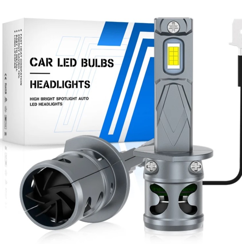 Set 2 becuri auto LED cu ventilator mini H1, canbus, 120W, BZRSH, soclu H1, 12V, 6000K