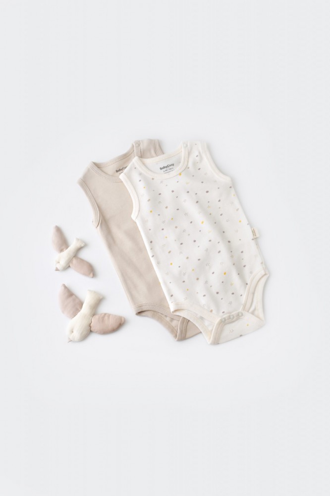 Set 2 body-uri fara maneci bebe unisex -100% bumbac organic - Ecru cu buline, BabyCosy (Marime: 6-9 luni)