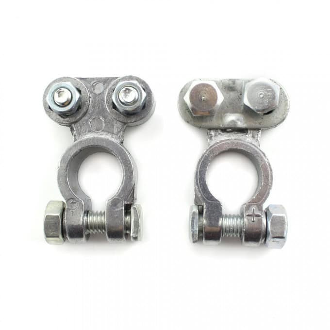 Set 2 borne baterie auto Pozitiv +Negativ Aluminiu CARGUARD. Borne pentru acumulator foarte rezistente în timp. Garantat, rezistivitate de transfer redusă și calitate înaltă a materialelor compozite. Oferă o strangere mecanică fermă – fără a deteriora bornele de plumb ale bateriei. Avantajele acestui set de borne se fac simțite mai ales iarna, când curenții de pornire foarte mari pun la grea încercare elementele de legătură dintre baterie și instalația electrică a mașinii. Setul conține: 2 borne baterie auto ( pozitiv + negativ). Material: Aluminiu. Greutate: 106 g.