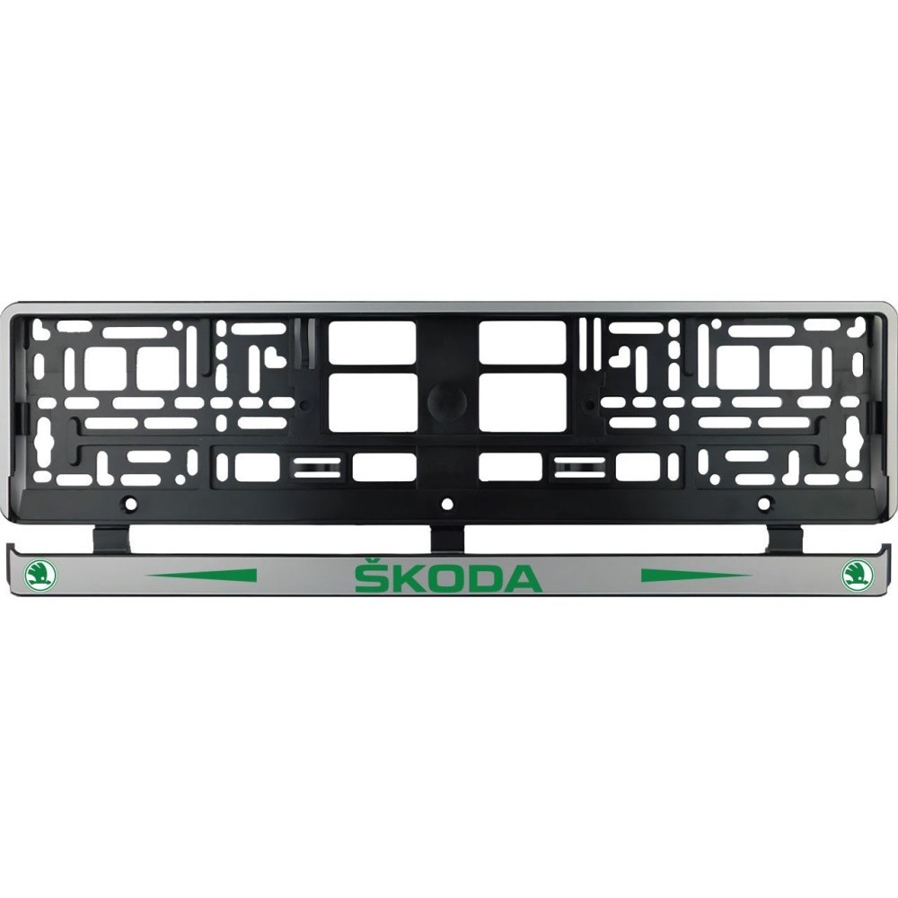 Set 2 bucati, suport numar inmatriculare argintiu Skoda II