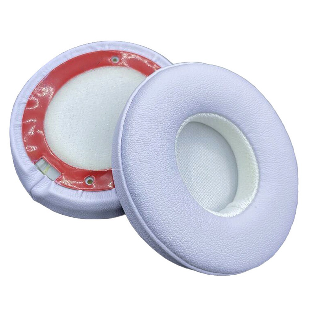 Set 2 bureti pentru casti Beats Solo 3, Solo 2 Wireless, On-Ear, Spuma cu memorie, Piele ecologica, Alb