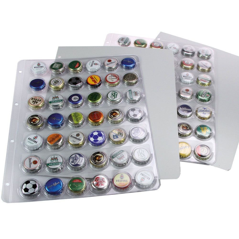 Folii blister pentru capace de sampanie. Material rigid, super transparent, in format A4. Fiecare blister are 42 locasuri. 4 perforatii la o distanta de 80-80-80 mm - Ideal pentru albumul 7880 special conceput. Pachetul contine 2 folii blister si 2 coli A4, gri, plastifiate pentru fundal.