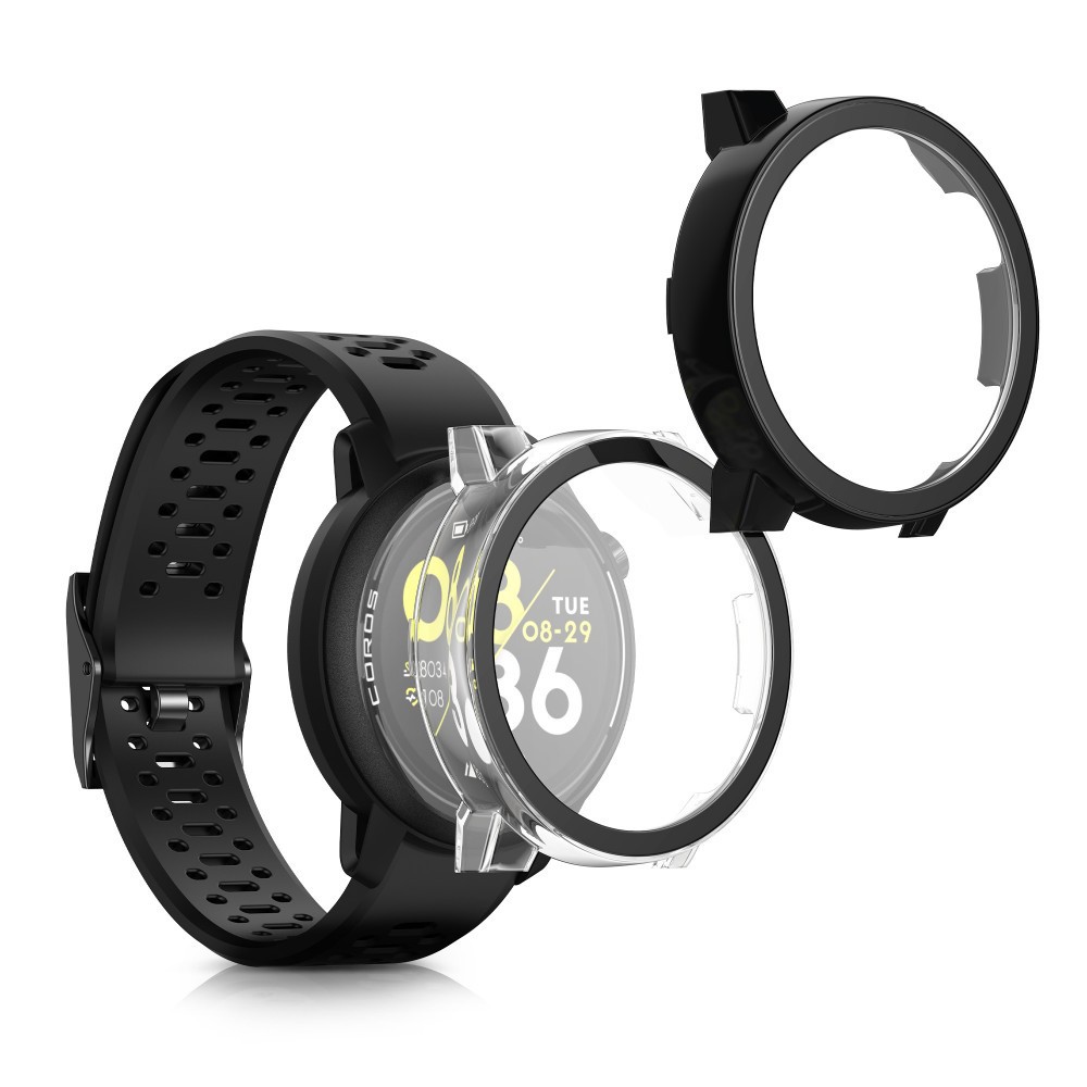 Set 2 Huse Kwmobile cu sticla securizata pentru Coros PACE 3, Transparent/Negru, Plastic, KWM000025BH001C