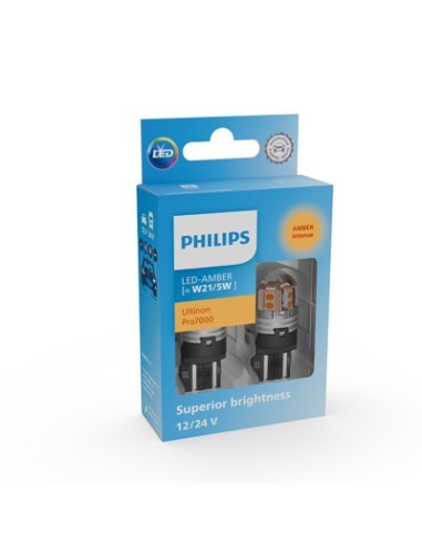 Set 2 leduri auto Galben W21/5W Philips Ultinon Pro7000 SL semnalizare 12V/24V
