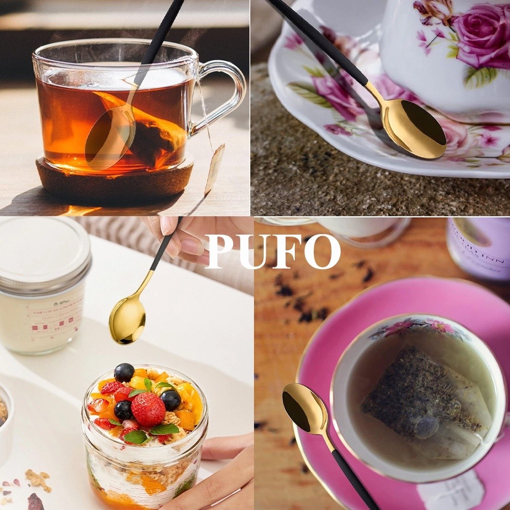 Set 2 lingurite Pufo Luxury pentru desert, fructe, servire ceai, otel, 12 cm, auriu/negru