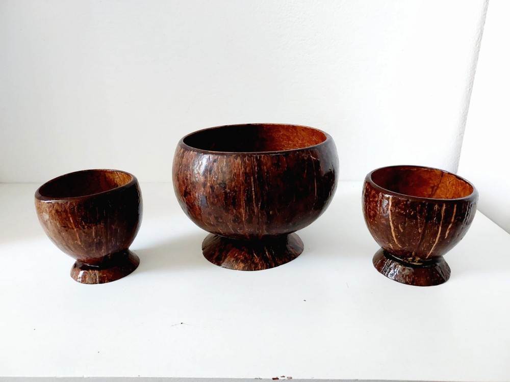 Set 2 pahare si un bol din coajă de nucă de cocos