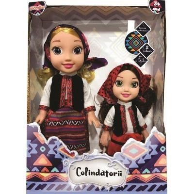 Set 2 papusi care colinda, costum popular, 2 colinde