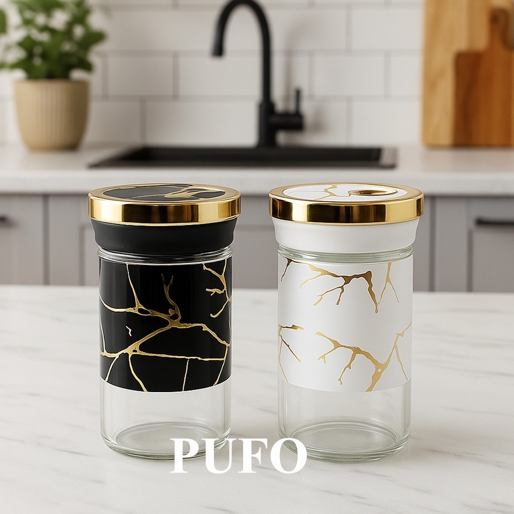Setul de 2 recipiente din sticla Pufo Ellegant pentru sare, piper sau condimente este alegerea ideala pentru orice bucatarie moderna. Fabricate din sticla transparenta de calitate, aceste recipiente iti permit sa vezi usor continutul, pastrand in acelasi timp si prospetimea condimentelor.