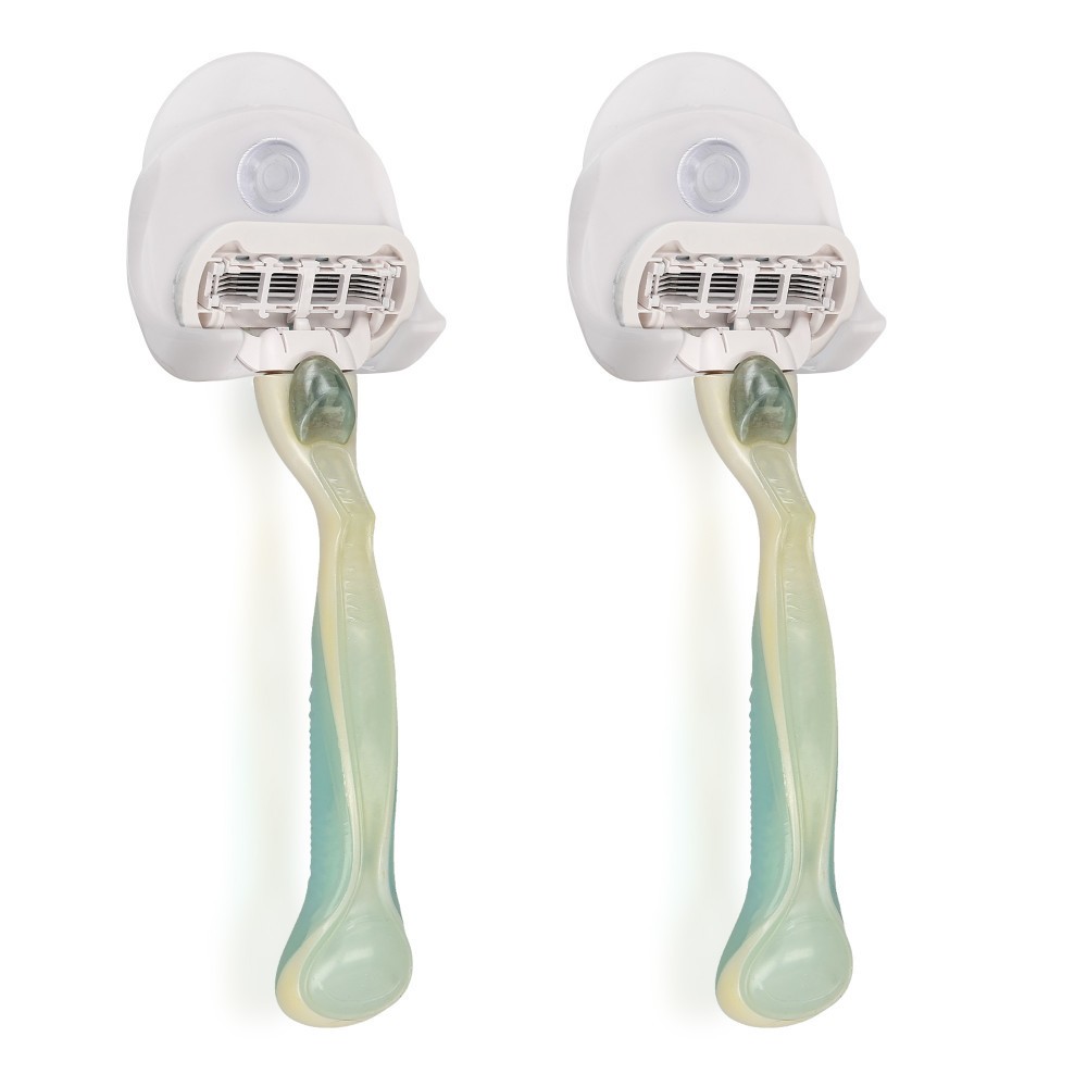 - DEPOZITARE DE PERETE: Suporturi durabile din plastic pentru aparatele de ras de unica folosinta si umede in baie si dus