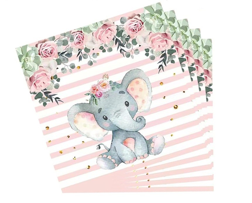 Set 20 de Servetele de Masa, Cyrax, Imprimeu Elefant, din Hartie, 16.5 x 16.5 cm, Roz