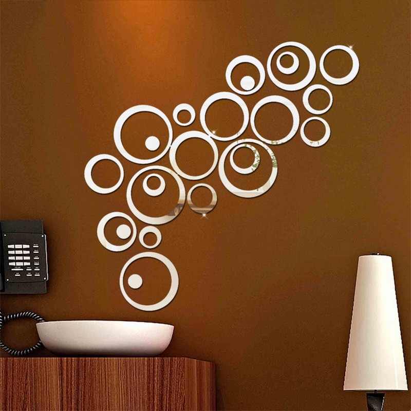 Set 24 oglinzi acrilice rotunde, autoadezive, diverse marimi, argintiu