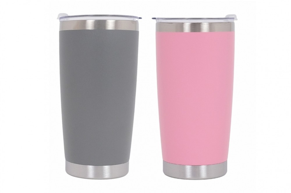 Set 2x Cana Termoizolanta Otel Inoxidabil SS304 cu Capac Perete Dublu 590ml Roz Gri Performance AutoTuning