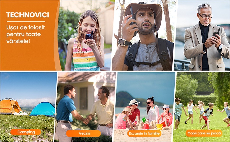Aceste walkie talkie nu sunt doar dispozitive de baza, ci sisteme de comunicare avansate. Ele utilizeaza standardul FRS (Family Radio Service), ideal pentru uz civil, drumetii si organizarea de evenimente.